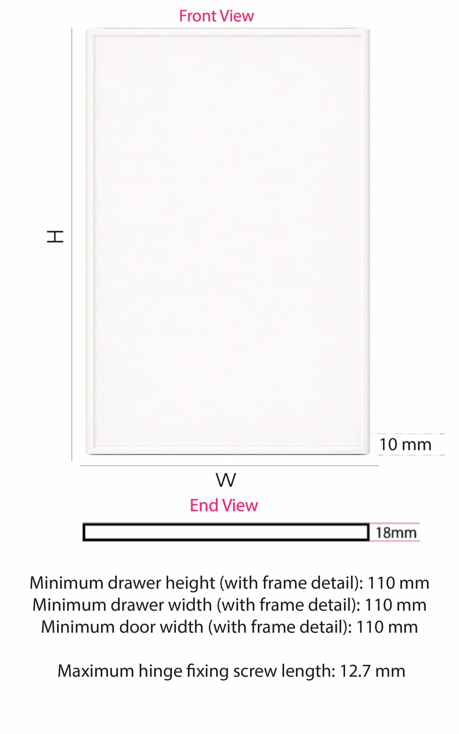 Constructed from durable 18mm MDF, each door is vinyl wrapped across the front and edges to create a consistent, hard-wearing surface. The rear surface is colour matched, ensuring a clean and uniform finish throughout.